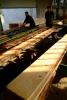 Voditelj proizvodnje, ljubazni gospodin Anton Colnar, pokazao nam je ogromne trupce smreke i bukve, koje smo zatim pratili u pilanu i bili uz njih sve dok nisu ispiljeni u daske duljine preko 7 metara. Malo smo bili uzbuđeni, gledajući kako raste hrpa dasaka, iz koje ćemo napraviti naš DRAVSKI ČON. Domaćini su pak bili uzbuđeni našim fotografiranjem pilane. Na kraju su oni dobili izvrsne fotografije na CD-u, a mi obilnu mjeru dasaka, na čemu im se zahvaljujemo. Daske sad idu na sušenje, a zatim slijedi prijevoz u Podravinu. |